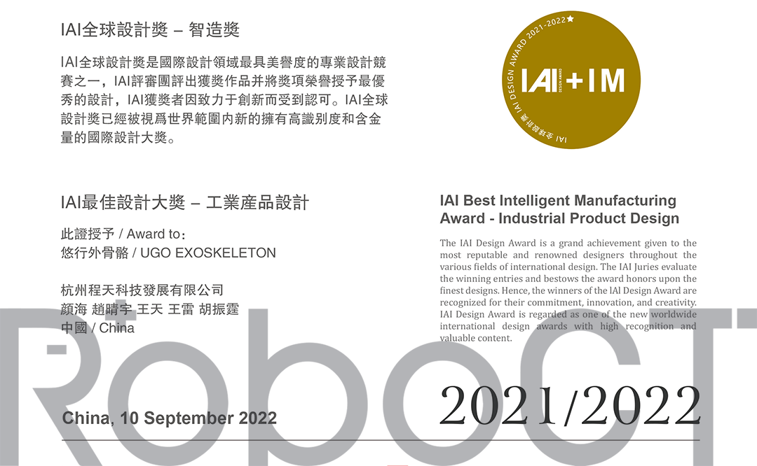 獎項 | 程天外骨骼再獲IAl全球工業設計最佳設計大獎