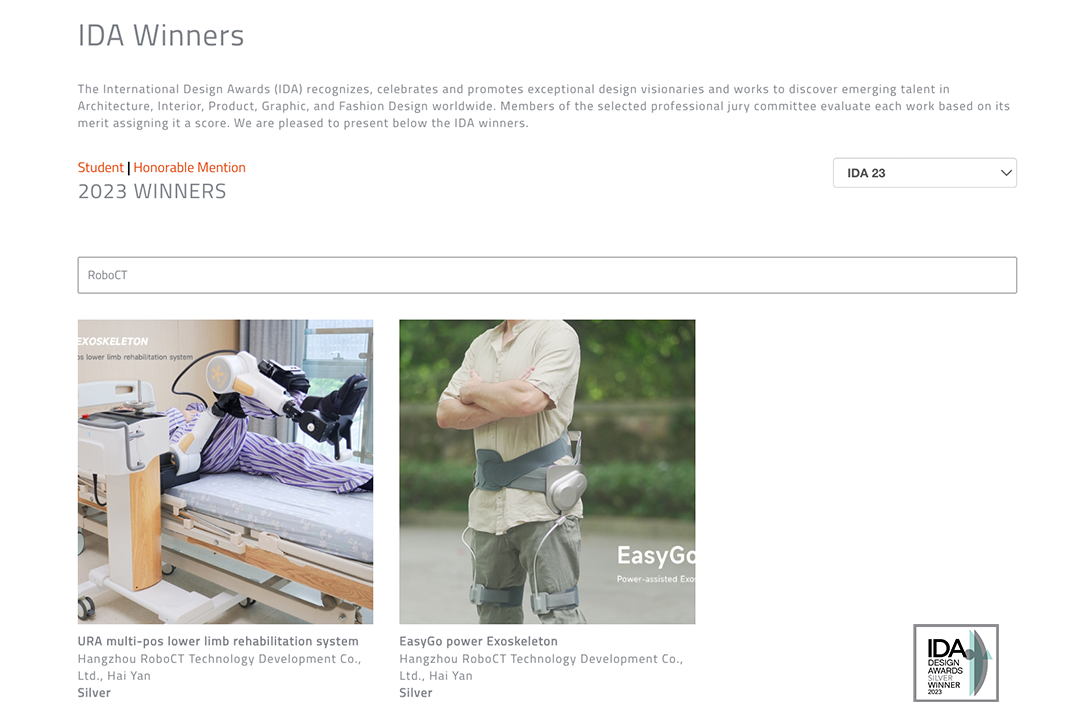 近日,美國國際設計大獎賽IDA公布了2023年度最終獲獎名單,作為領先的外骨骼技術公司,程天科技最新發布的兩個系列外骨骼產品,悠然URA床邊外骨骼和易行EasyGo助力外骨骼,均斬獲大賽銀獎,此次獲獎代表了程天科技在科技康養領域的最新成果,也標志著外骨骼技術在全球范圍內的認可和應用前景。