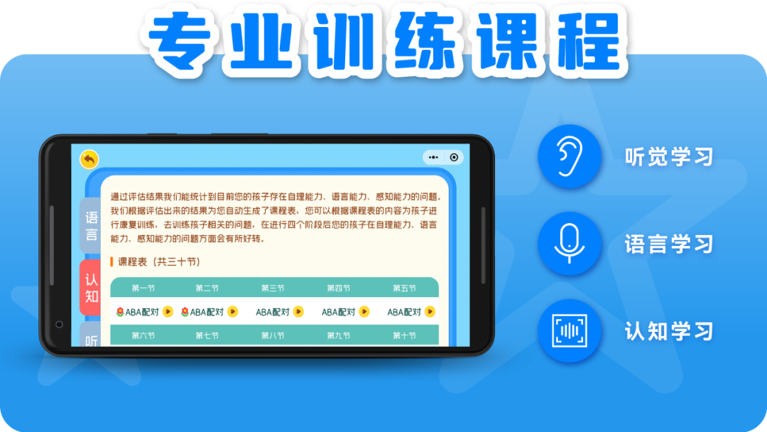 主要提供兒童聽覺系統測試,并根據測試結果,自動生成聽覺課程表,對應相關訓練課程。