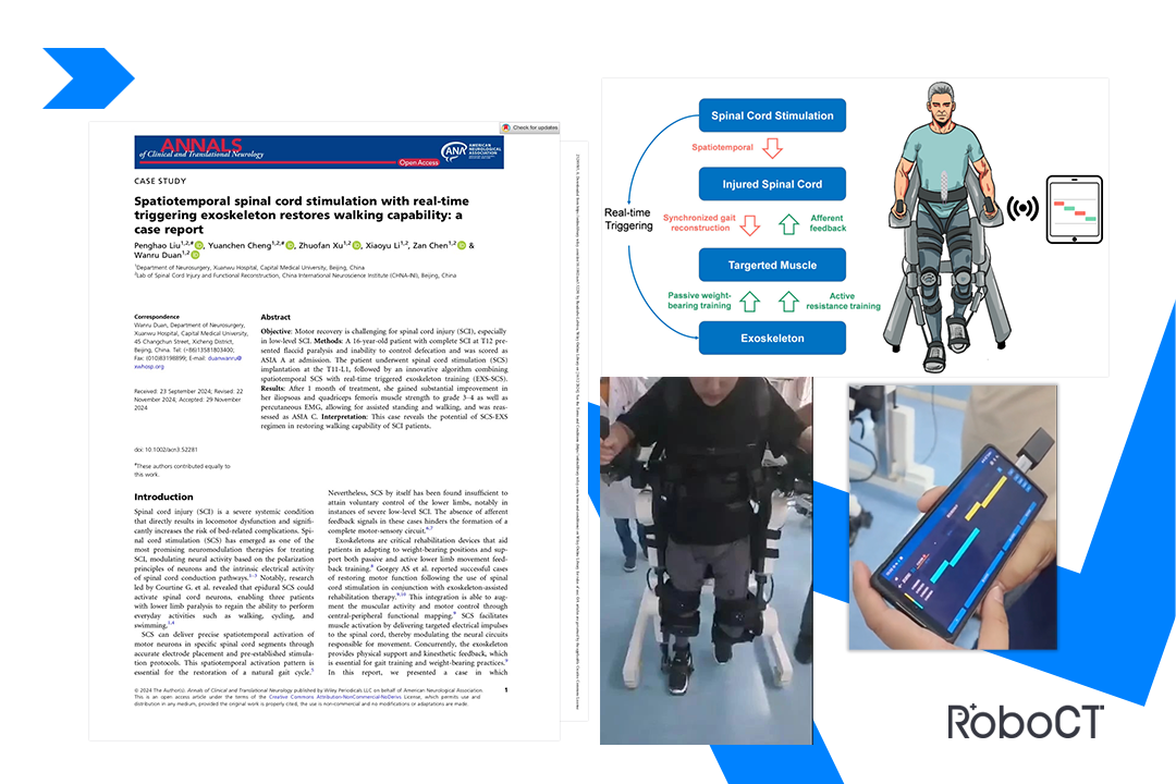 近日,由首都醫(yī)科大學(xué)宣武醫(yī)院神經(jīng)外科段婉茹團(tuán)隊完成的「時空序列脊髓電刺激結(jié)合實時觸發(fā)的外骨骼訓(xùn)練以恢復(fù)行走能力的病例報告(Spatiotemporal spinal cord stimulation with real‐time triggering exoskeleton restores walking capability: a case report)」在《臨床和轉(zhuǎn)化神經(jīng)病學(xué)年鑒(Annals of Clinical and Translational Neurology)》期刊發(fā)表,揭示了脊髓電刺激時空序列與外骨骼機(jī)器人(EXS-SCS)相結(jié)合的創(chuàng)新算法在恢復(fù)脊髓損傷(SCI)患者行走能力方面的潛力。