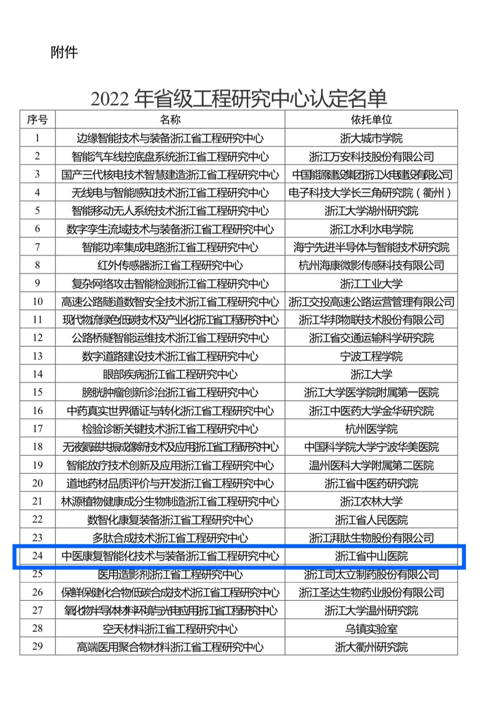 年度省工程研究中心名單的規劃管理,是為深入實施創新驅動發展戰略,進一步培育浙江省戰略科技力量。中醫康復智能化技術與裝備工程研究中心,作為省內第一家中醫康復領域省級工程研究中心,其整體建設將以加強中醫康復產業創新人才匯聚、促進共性技術研發、提升創新成果孵化轉化和行業企業服務為目標。